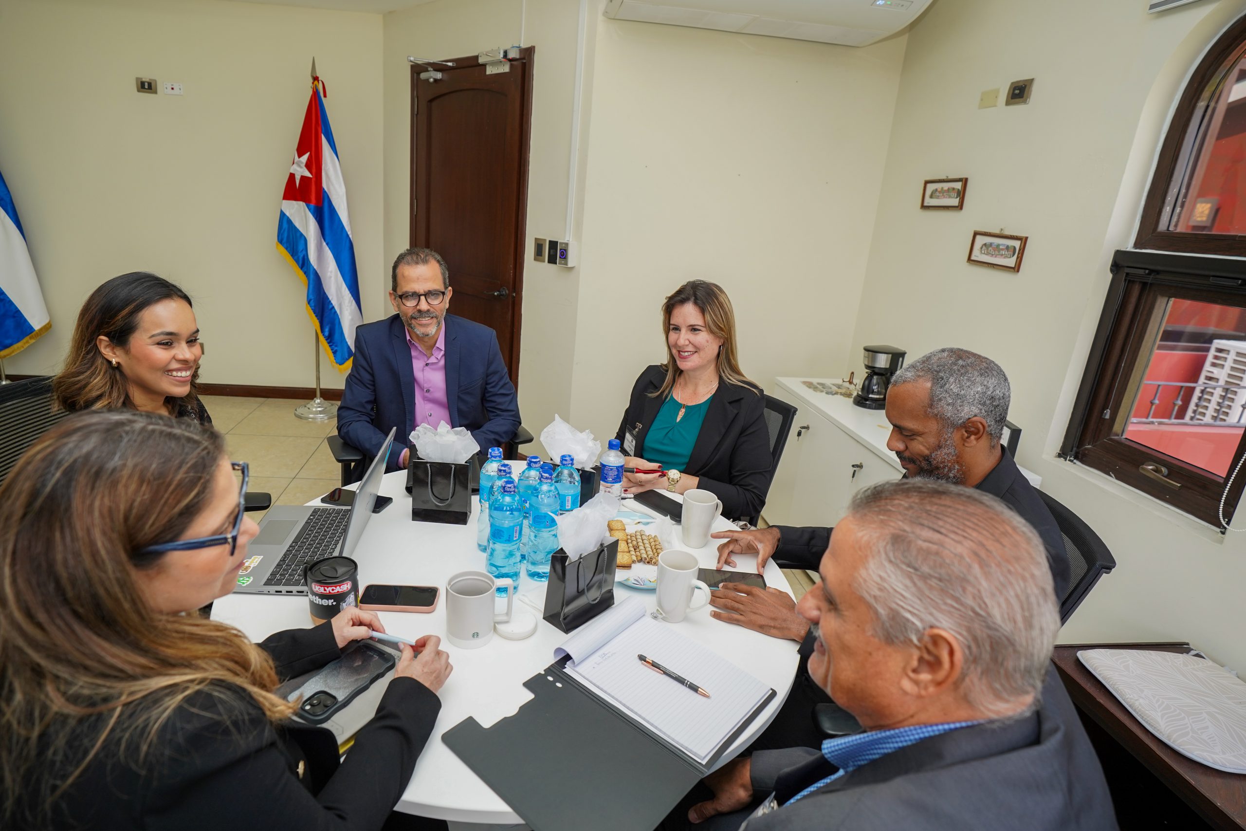 La delegación de Cuba se conformó por el Ministro Consejero de la Embajada de Cuba en El Salvador, Ariel Hernández; el director de la UIF de Cuba, Fernando Camejo, la jefa de Supervisión de Proveedores de Servicios Activos Virtuales, Janet Fernández; y el jefe de los sistemas de pagos del Banco Central de Cuba.